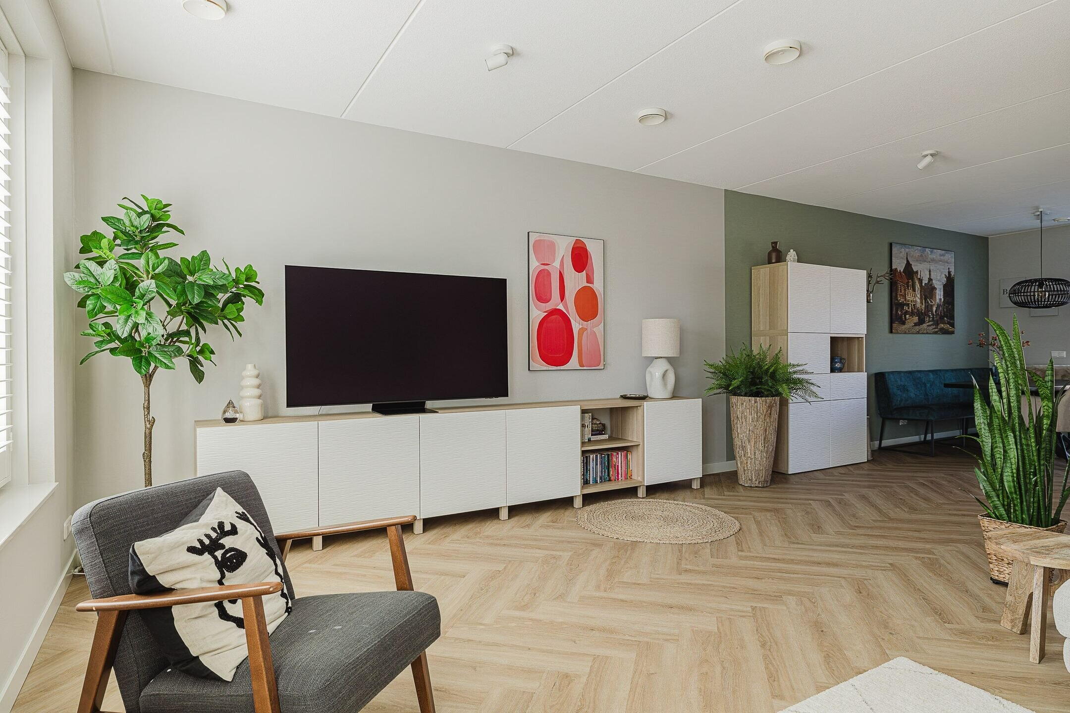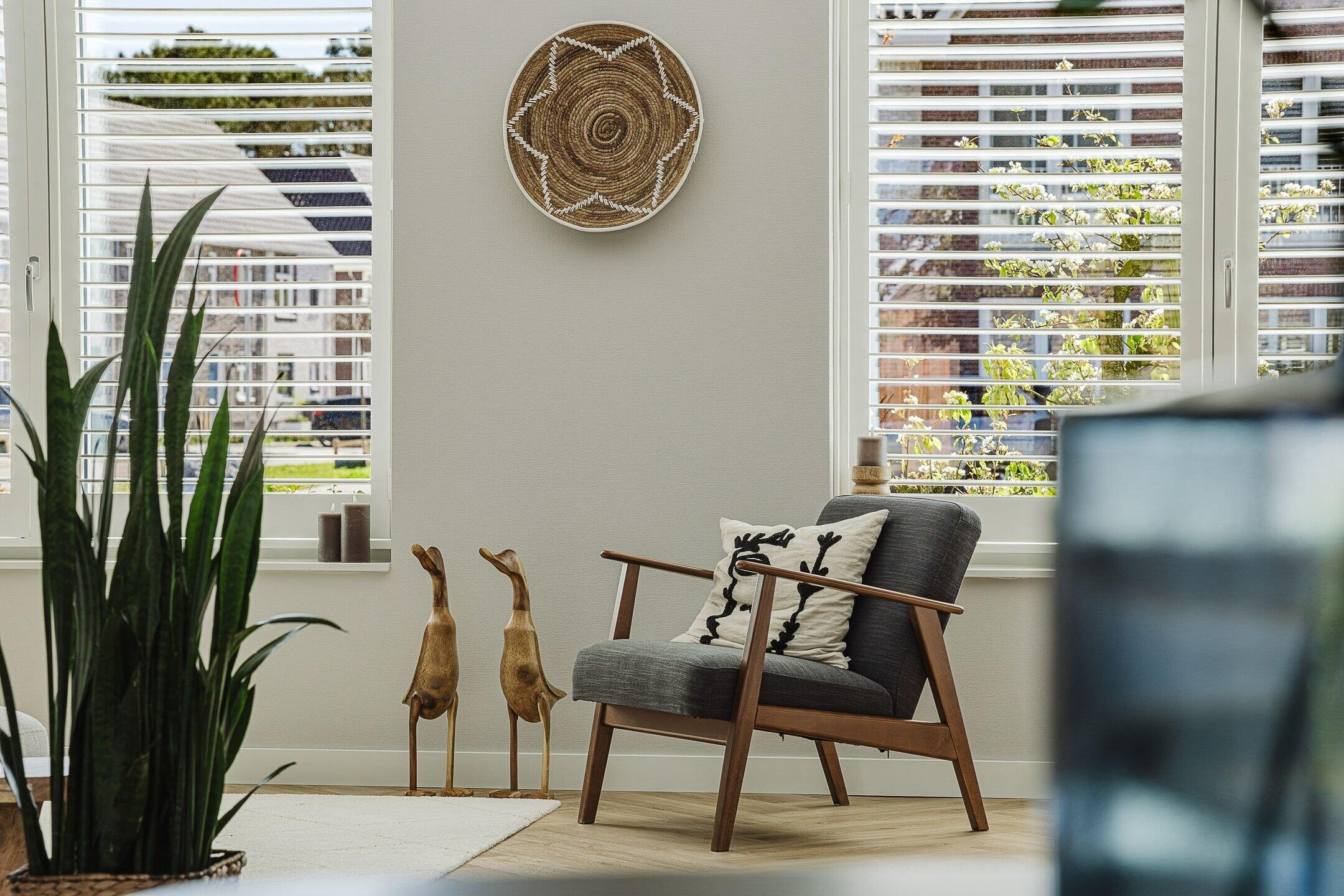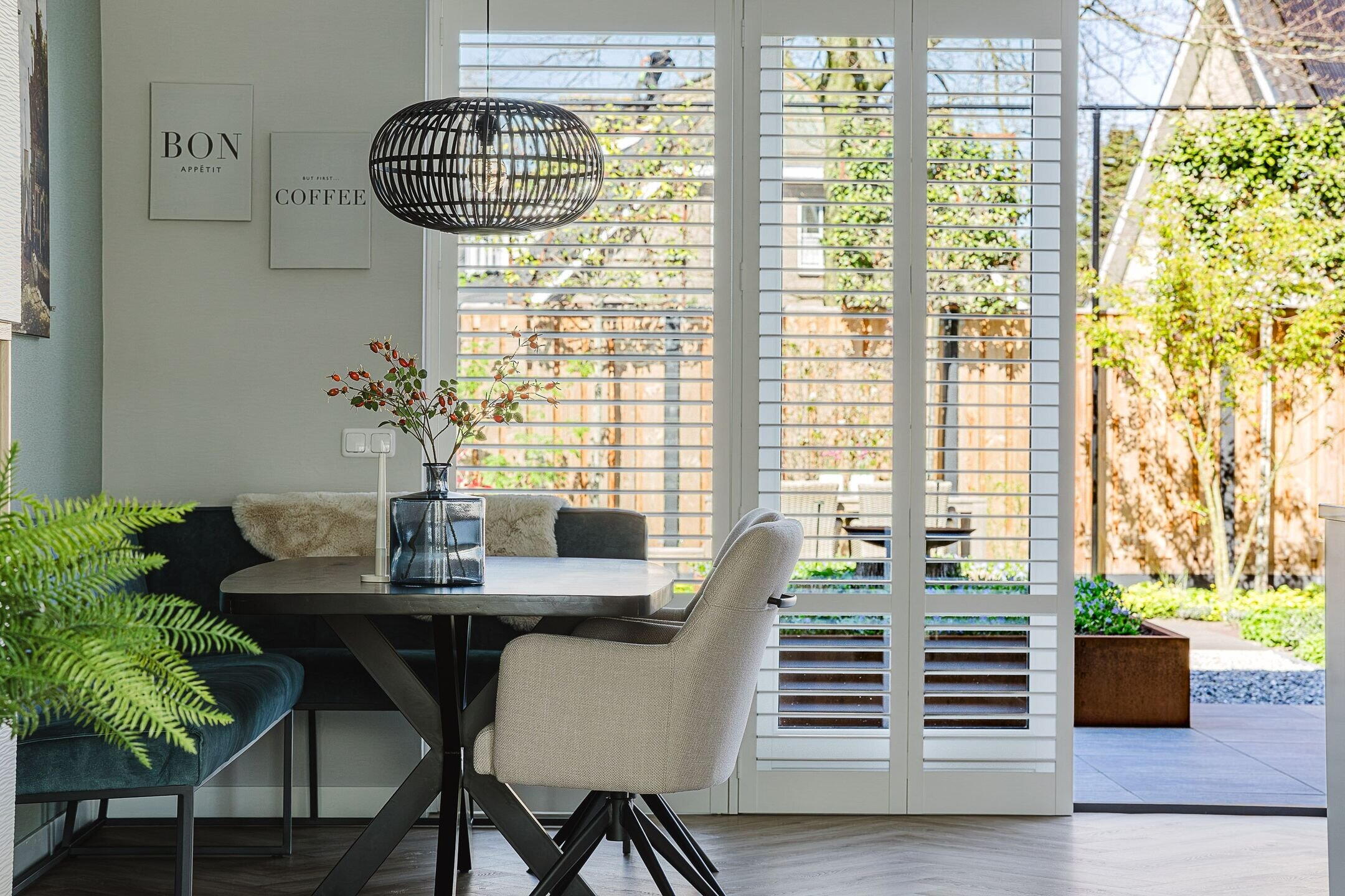 Bij binnenkomst valt direct de lichte woonkamer op. De grote raampartijen voorzien je van prachtig daglicht en geven een aangenaam gevoel van ruimte. Heb je oog voor stijl? Dan zul je helemaal weg zijn van de op maat gemaakte houten shutters die niet alleen praktisch zijn, maar ook een luxe uitstraling geven.