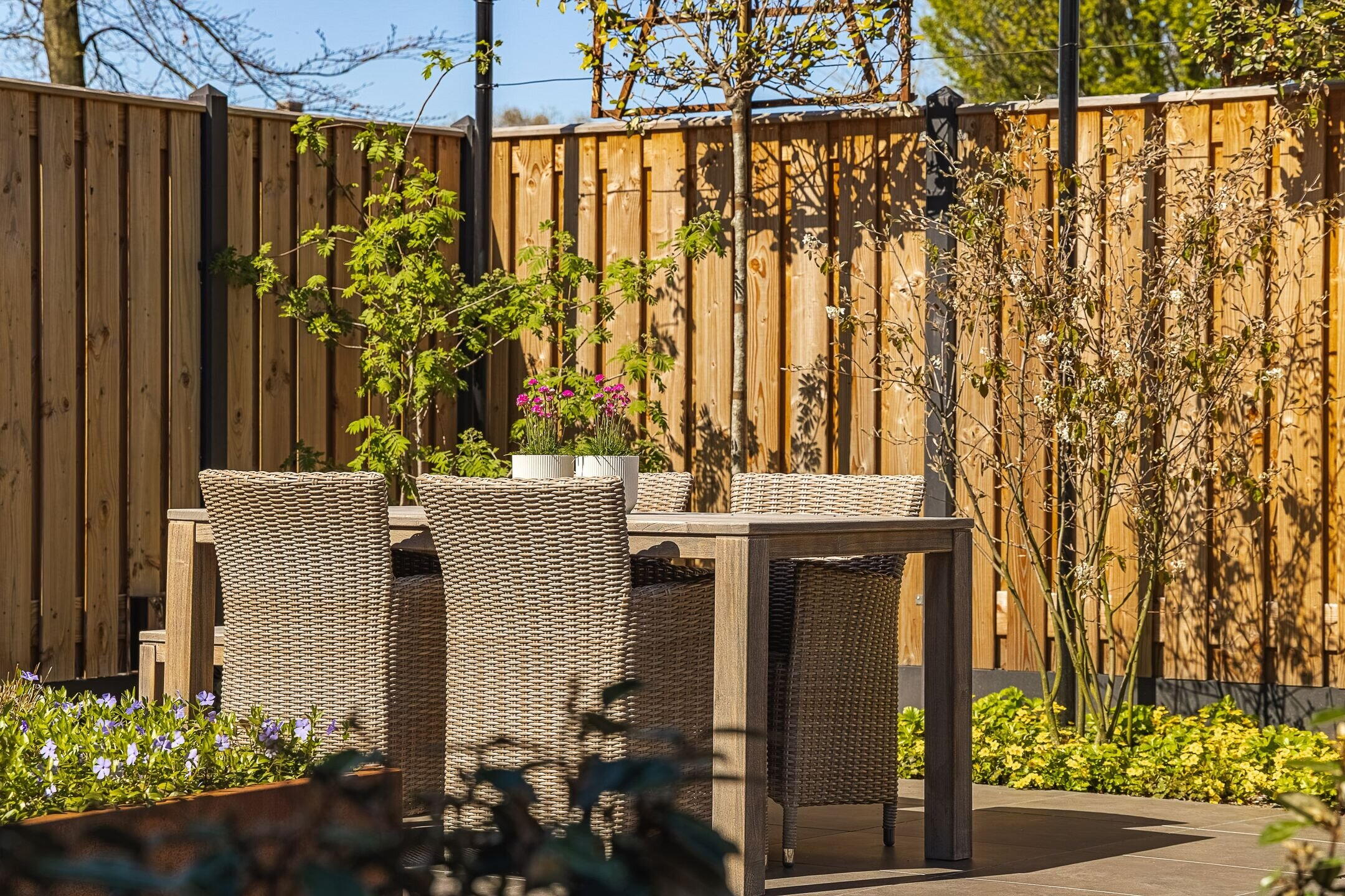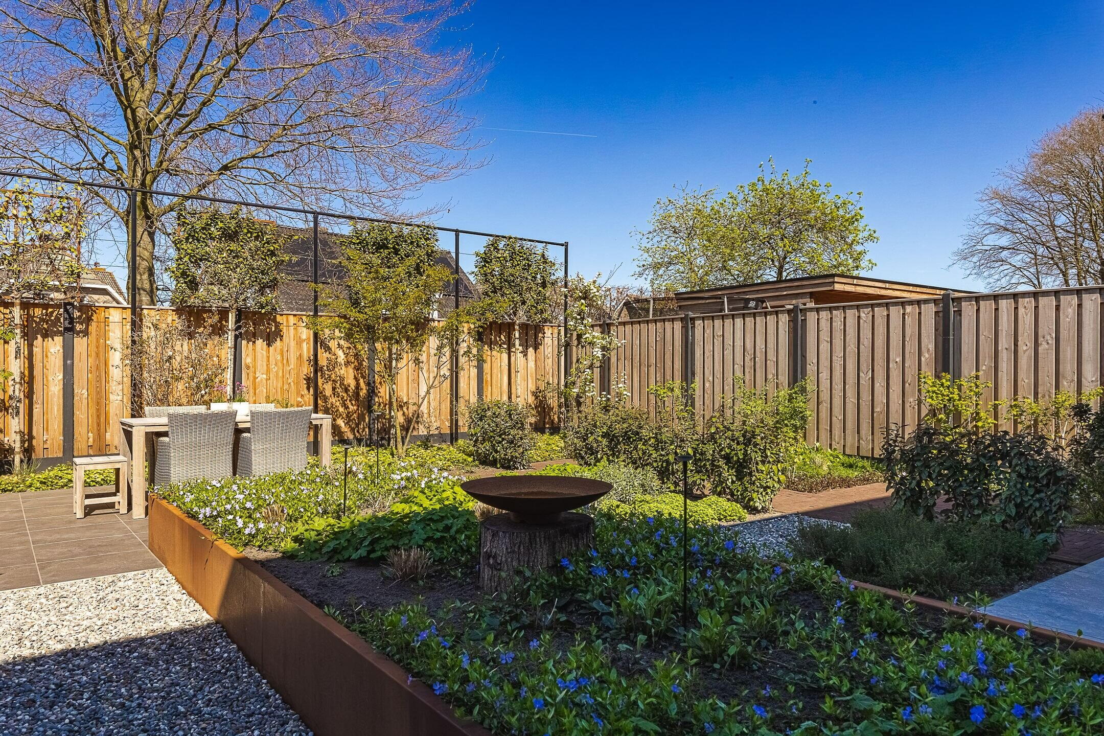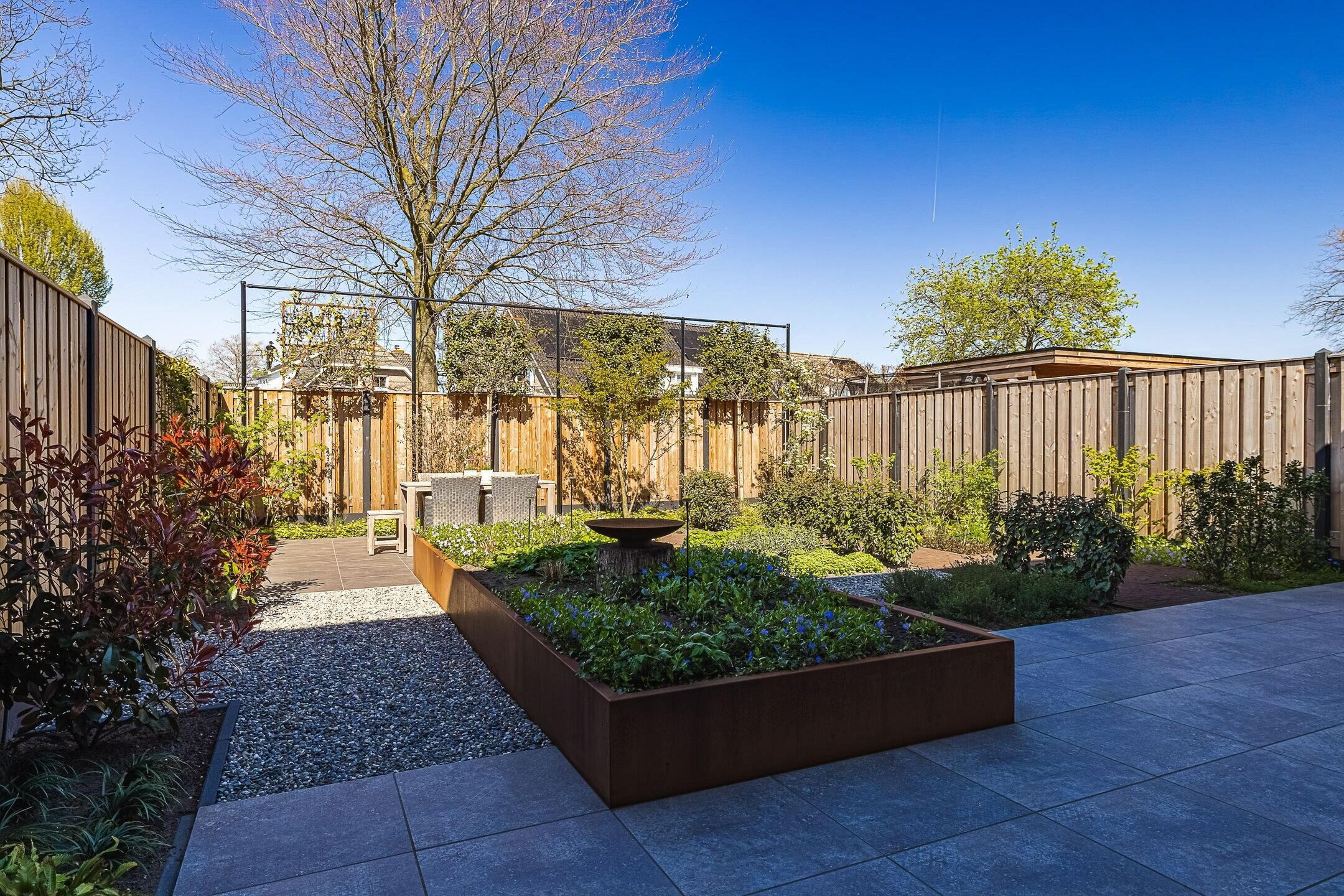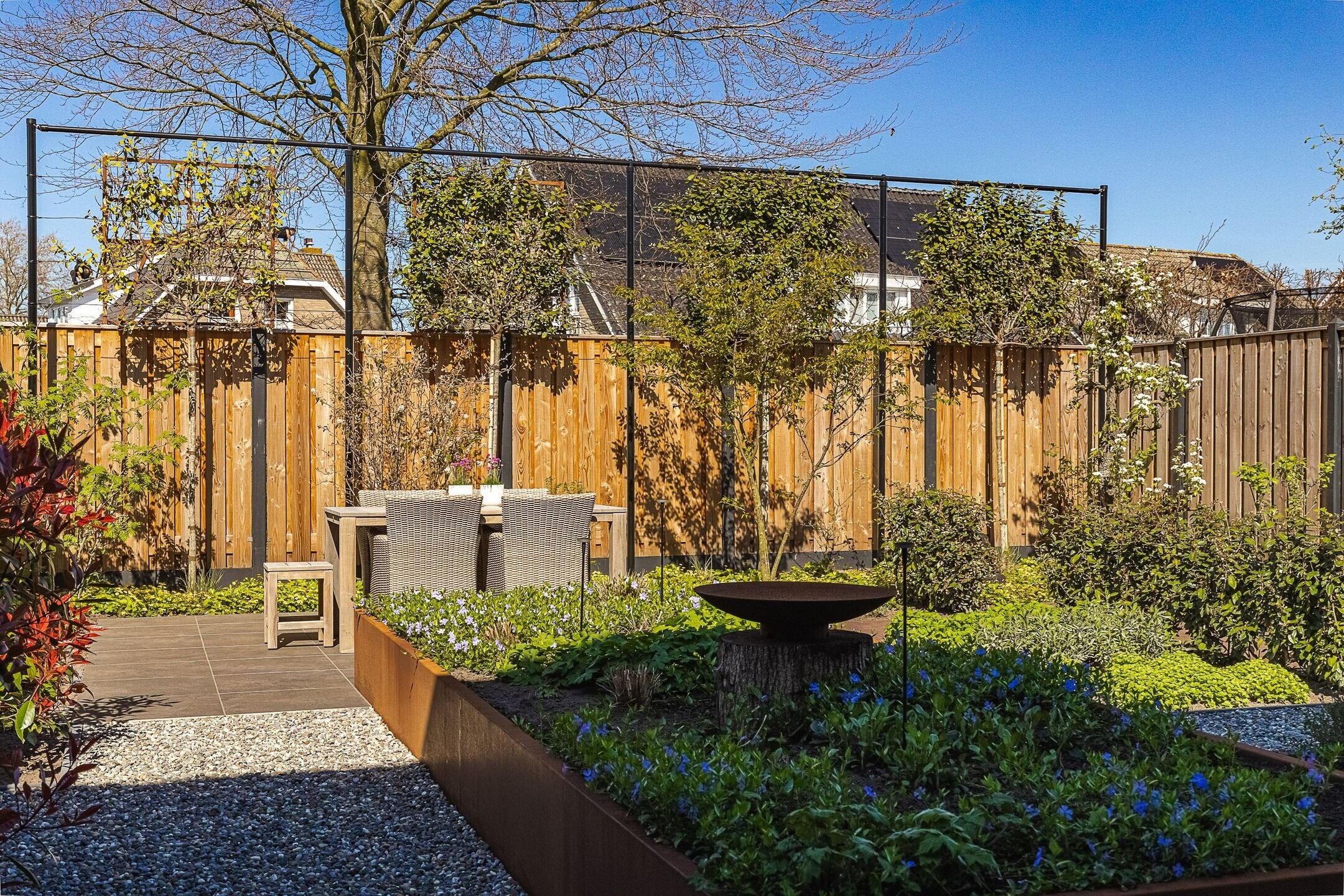 Stap naar buiten en ontdek de fraai aangelegde achtertuin: een oase van rust waar je tot de late avond zon meepikt. In de achtertuin is sfeervolle verlichting aangebracht onder meer onder de bomen en in de cortenstalen bak. De tuin is prachtig ontworpen en biedt ruimte voor ontspanning, spelen, barbecueën of simpelweg relaxen met een goed boek. Je vierkante meters lopen bovendien ver door dankzij de aangebouwde garage én een ruime oprit.